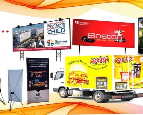 Banners are large-format printed materials made from durable vinyl or fabric, used for advertising,